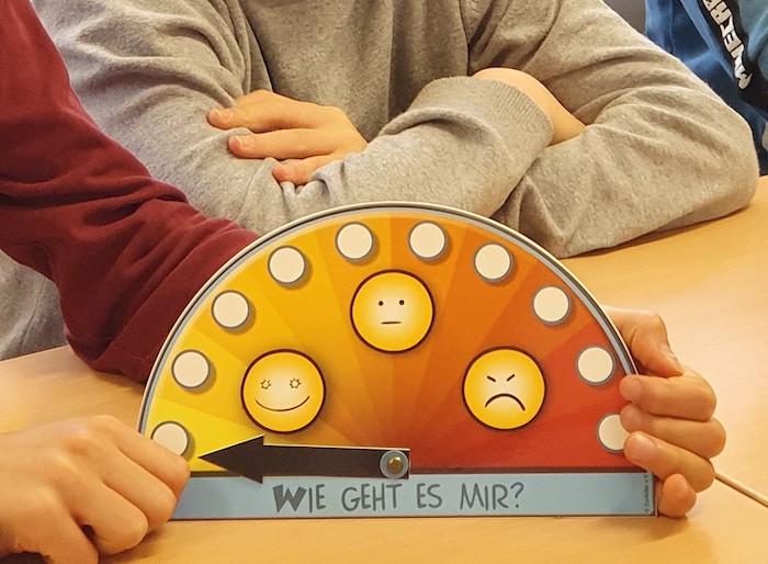 Der dritte Junge, Felix, hatte dagegen ständig Knatsch mit einem anderen Jungen beim Fangenspielen. „Er meinte, ich lasse mich absichtlich hinfallen“, sagt Felix. Inzwischen haben sich die beiden „Streithähne“ ausgesprochen. Dazu, ein- mal miteinander zu reden, hatten ihn Joachim und Gisela ermutigt. Den Zeiger des bunten Stimmungsbarometers stellen die drei Grundschüler jedenfalls auf „sehr gut“ und sind stolz auf ihren Erfolg.