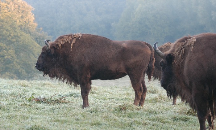 Wer mag, kann Wisente im Naturschutzgebiet beim Grasen beobachten. Foto: © Neanderthal Museum