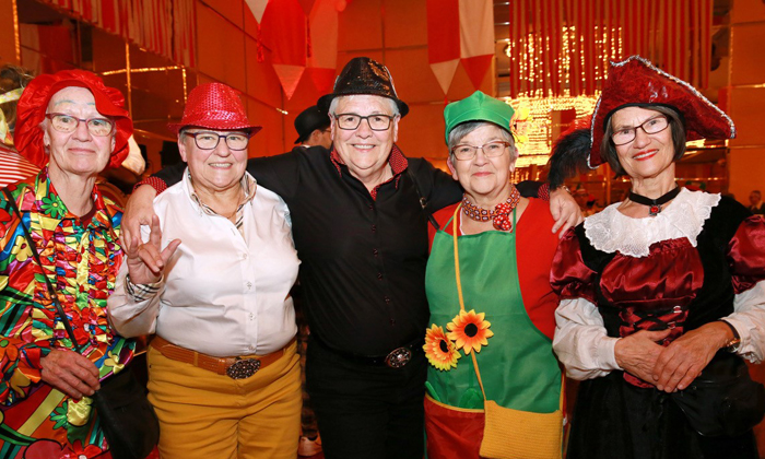 Karnevalsfans durch und durch: Ruth Weinand (rechts) mit ihren Freundinnen. Foto: Bettina Bormann.