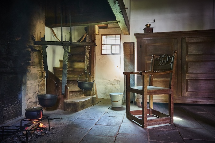 Im Freilichtmuseum Kommern sind selbst unterschiedliche Zeiten nebeneinander erlebbar: Eine Bauernstube mit Ofenfeuer ...